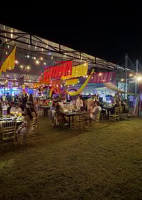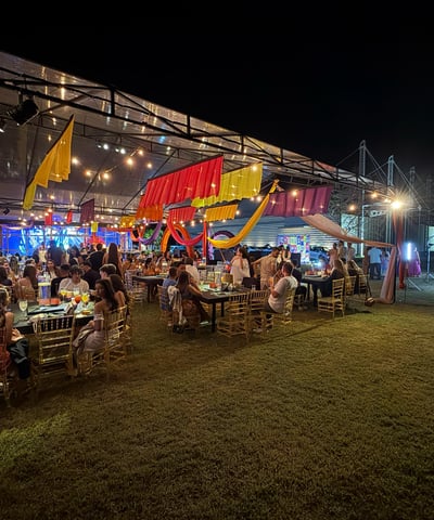 Oferecemos infraestrutura completa para eventos, incluindo tendas, cozinha, mesas, cadeiras e wi-fi, acomodando de 50 a 500 pessoas.